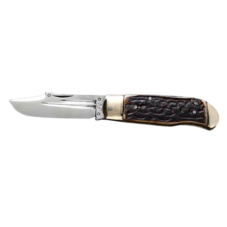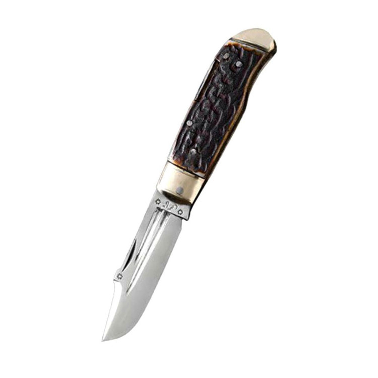 این متریال نزدیک ترین متریال به شاخ گوزن طبیعی میباشد و تنها فرقش این است که استخوان گاو سفید و صاف میباشد و برای نزدیک شدن به شاخ گوزن سازنده پروسه هایی در هنگام ساخت را پشت سر میگذارد تا بدین گونه استخوان گاو به شاخ گوزن شبیح شود! شاخ گوزن طبیعی قیمت بالایی دارد و اگر این چاقو از شاخ گوزن ساخته شده بود حدود رنج قیمتی ۴۵۰ و ۶۰۰ هزار تومانی داشت سازنده برای کاهش قیمت و در دسترس بودن این چاقو برای هر نوع قشری از این متریال استفاده کرده است که تا حدود زیادی نیز شبیح به هم میباشند!